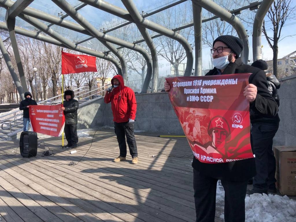 За украденные у нас деньги чиновники строят себе дворцы, окружая себя охранной, но МЫ, участники собрания, на 103-й год со дня создания Красной Армии и Военно-Морского Флота напомним чиновникам, что у нас богатый опыт взятия таких дворцов. Мы требуем остановить разрушение будущего России, а всех коррупционеров посадить в тюрьму.