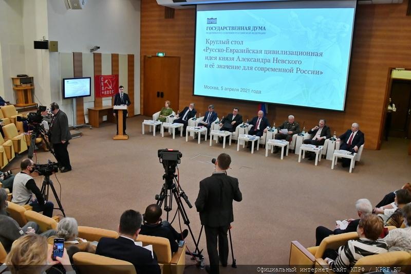 5 апреля 2021 года фракция КПРФ в Государственной Думе провела «круглый стол» на тему: «Русско-евразийская цивилизационная идея князя Александра Невского и ее значение для современной России». Форум был приурочен к очередной годовщине Ледового побоища, в котором, под руководством Александра Невского, в 1242 году была одержана историческая победа над немецкими крестоносцами и остановлено вторжение Запада на Русь.