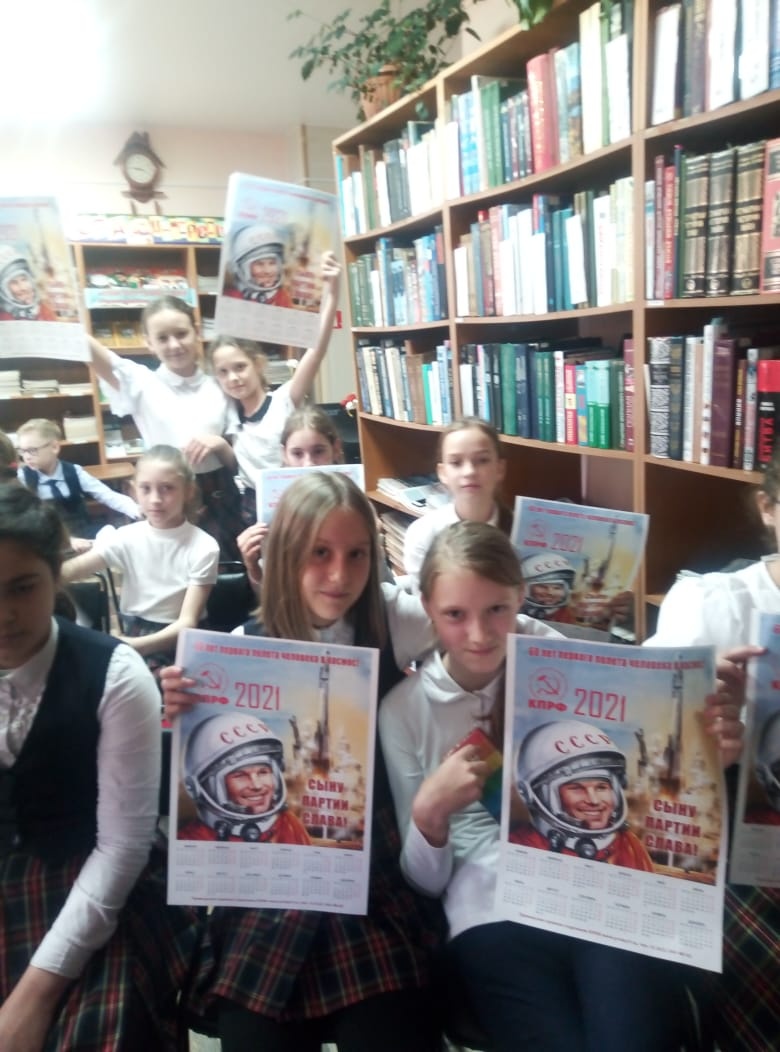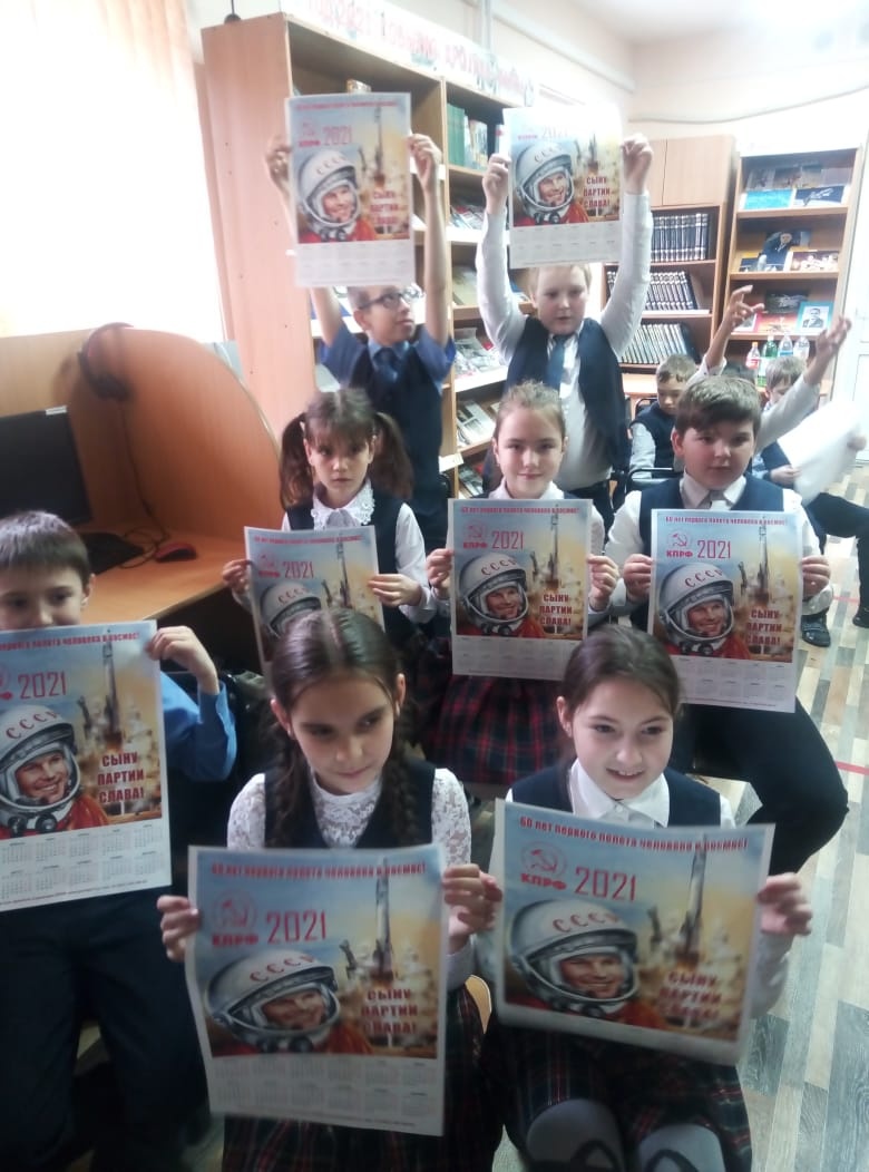 Участниками разнообразных активностей, посвящённых Международному Дню Космонавтики, вновь стали учащиеся 4-х классов МБОУ «Гимназия №259» г. Фокино. 12 апреля перед гимназистами широко распахнулись двери межпланетного космического корабля в городской библиотеке. На борту звездолета библиотекарь Шляховая В.А. активистка, разделяющая идейные взгляды КПРФ, провела для школьников Гагаринский урок. Урок был посвящён первому космонавту нашей страны Ю. А. Гагарину, истории покорения космоса человеком, развитию космонавтики в России. Ребята дружно отвечали на вопросы о космосе, составляли слова, примеряли на себя роль лётчика. Благодарим членов Фокинского местного отделения КПРФ за предоставление наглядного материала.
