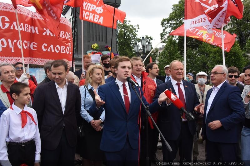 6 июня 2021 года в торжественной церемонии приняли участие представители КПРФ, ЛКСМ, Всероссийского созидательного движения «Русский Лад», Всероссийского женского союза «Надежда России», организации «Дети войны», Союза Советских офицеров, Движения в поддержку армии, оборонной промышленности и военной науки, союзники и сторонники партии. Кстати, по сложившейся в последние годы недоброй «традиции» полиция попыталась помешать участникам мероприятия, не давая им развернуть флаги и транспаранты в защиту русского языка. Однако эти попытки оказались тщетными.