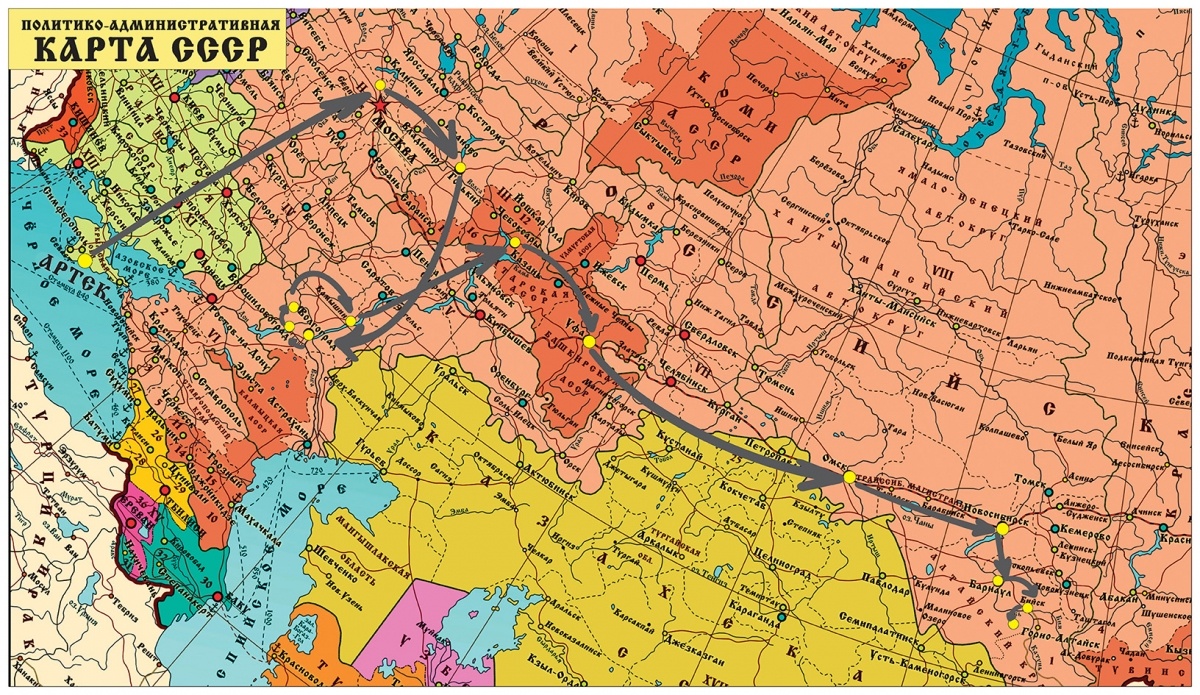 Через Уфу, Омск, Новосибирск, Барнаул, Бийск пионеры и комсомольцы наконец добрались до алтайского курорта Белокуриха. На поездах и пароходах, грузовиках и подводах они проехали 7750 километров. Год и три месяца в пути. Год и три месяца взрослого труда, ночевок в теплушках и на голой земле, дежурств на крышах под разрывы бомб и в госпиталях, у постели раненых…