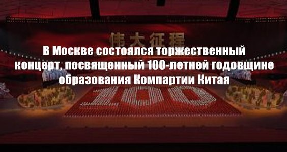 5 июля в Москве, в Центральном академическом Театре Российской Армии фракция КПРФ в Государственной Думе ФС РФ, Посольство КНР в России и Общество российско-китайской дружбы провели торжественный вечер-концерт, посвященный 100-летней годовщине образования Коммунистической партии Китая и 20-летию подписания Договора о добрососедстве, дружбе и сотрудничестве между Российской Федерацией и Китайской Народной Республикой.