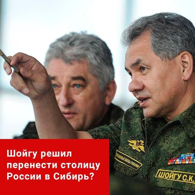 Перенести столицу в Сибирь и построить здесь несколько новых городов предложил лидер предвыборного списка "Единой России", глава Русского географического общества и министр обороны РФ Сергей Шойгу. «Нам необходимо в Сибири построить три, а лучше пять крупных центров научно-промышленных, экономических центров, проще говоря, городов с населением 300−500 тысяч, лучше — до миллиона человек», — заявил он на встрече с научной общественностью Сибирского отделения РАН. Лидер списка "Единой России" также добавил, что надо не просто построить и перенести в Сибирь столицу, а сделать эти города направленными конкретно на ту или иную сферу деятельности.
