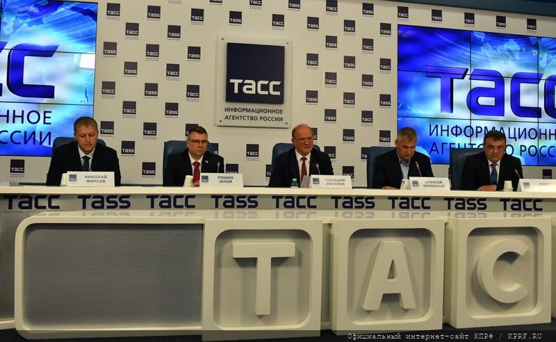 В пресс-конференции приняли участие Председатель ЦК КПРФ, Руководитель фракции КПРФ в Государственной Думе Геннадий Зюганов, член ЦК КПРФ, первый секретарь Ульяновского областного Комитета КПРФ Алексей Куринный, врач-нейрохирург нейрохирургического отделения Вологодской областной клинической больницы, кандидат в депутаты Государственной Думы ФС РФ Олег Ершов, фельдшер первой категории Боровичской станции скорой медицинской помощи, Новгородская область, депутат фракции КПРФ Совета депутатов г. Боровичи Николай Фирсов, главный врач Курской клинической психиатрической больницы, депутат Курской областной Думы от КПРФ Юрий Рощин, секретарь ЦК КПРФ Александр Ющенко.