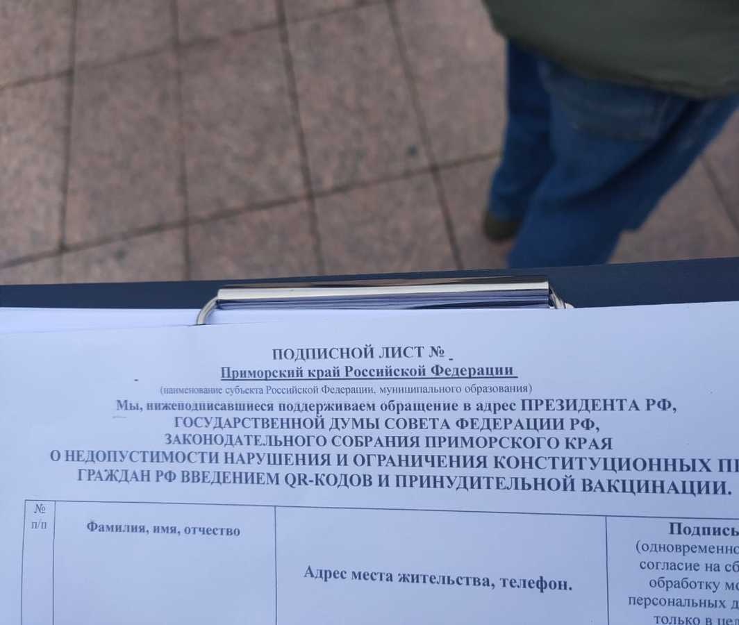 В ходе мероприятия собирали подписи за освобождение Самсонова, против политических репрессий и за отмену QR-кодов.