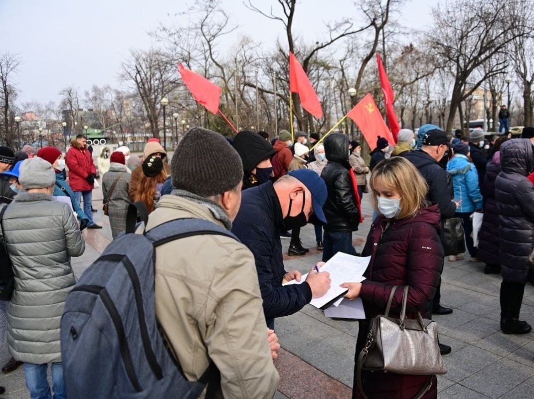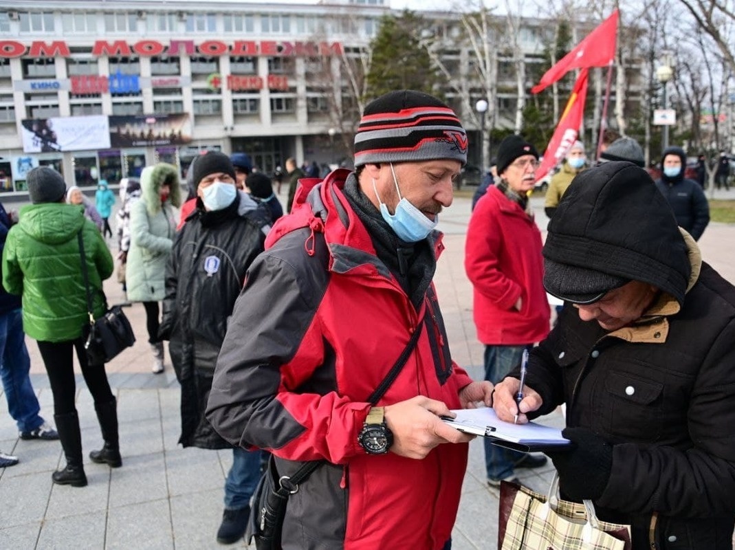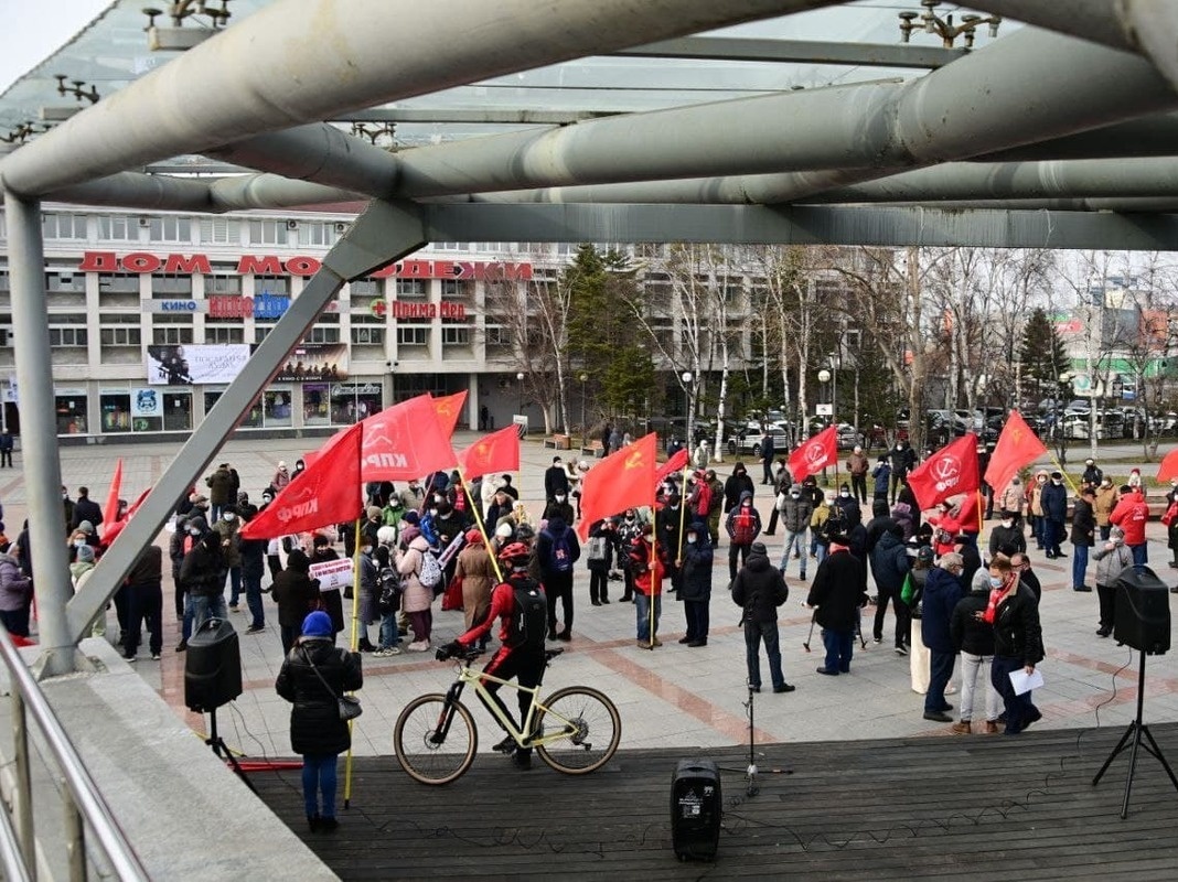 В воскресенье, 21 ноября, у Дома Молодёжи коммунисты Владивостока провели акцию в поддержку А. А. Самсонова, первого секретаря ВГО КПРФ, задержанного по надуманному обвинению.