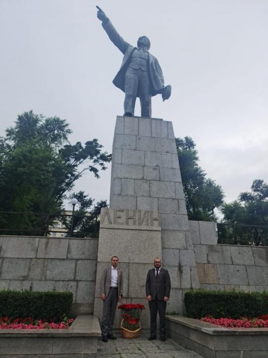 Перед началом встречи Юрий Афонин и первый секретарь Приморского крайкома КПРФ, руководитель фракции коммунистов в Законодательном Собрании края Анатолий Долгачёв возложили корзину с красными гвоздиками к памятнику В.И. Ленину на Вокзальной площади. Там начертаны крылатые ленинские слова, сказанные им без малого 100 лет назад, 20 ноября 1922 года: «Владивосток далеко, но ведь это город-то нашенский».
