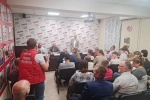 Открывая встречу, Анатолий Долгачёв рассказал о подготовке краевого отделения партии к муниципальным выборам, которые состоятся в Единый день голосования. Выдвинуто 134 кандидата от КПРФ, зарегистрированы 116, остальным отказано под предлогом нарушений в документах. Часть решений об отказе оспариваются в судебном порядке. Лидер коммунистов Приморья заявил о решимости показать наилучший результат и затем передал слово Юрию Афонину.