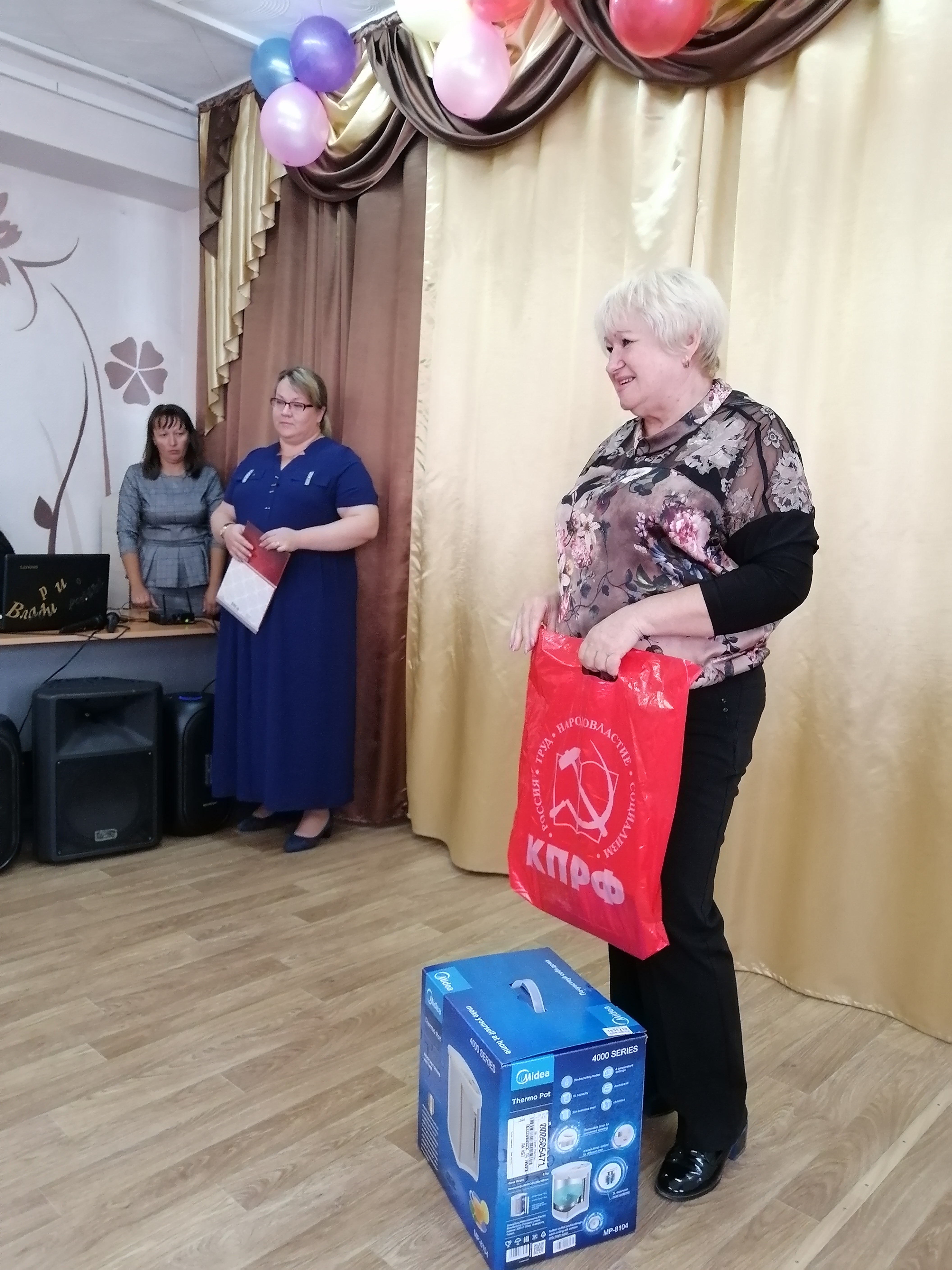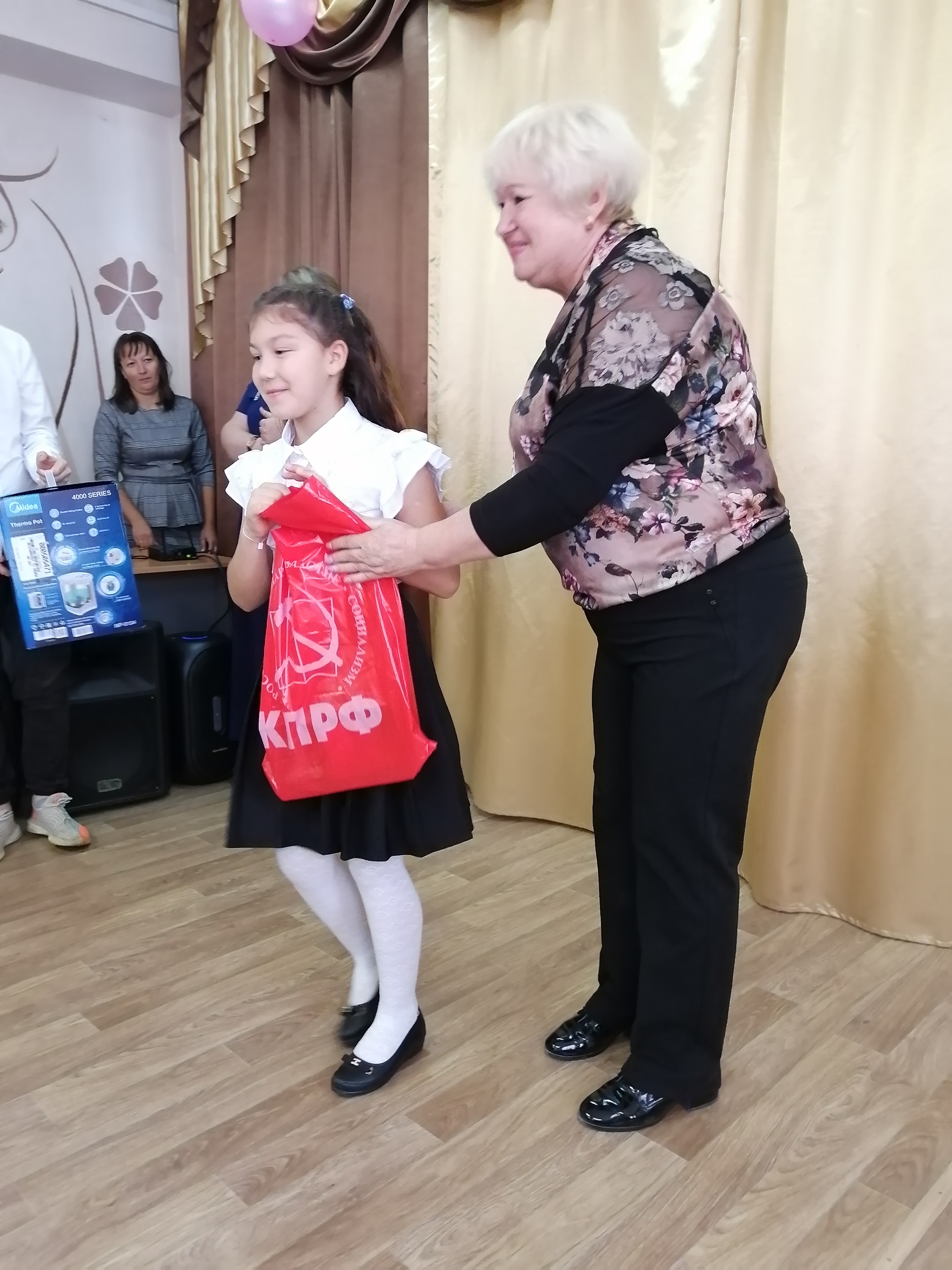 От имени коммунистов и комсомольцев Лесозаводска Детскому Дому был вручён вместительный чайник-термос Midea MP-8104, а имениннице Насте Снеженцевой – сладкий подарок. Праздник закончился чаепитием.