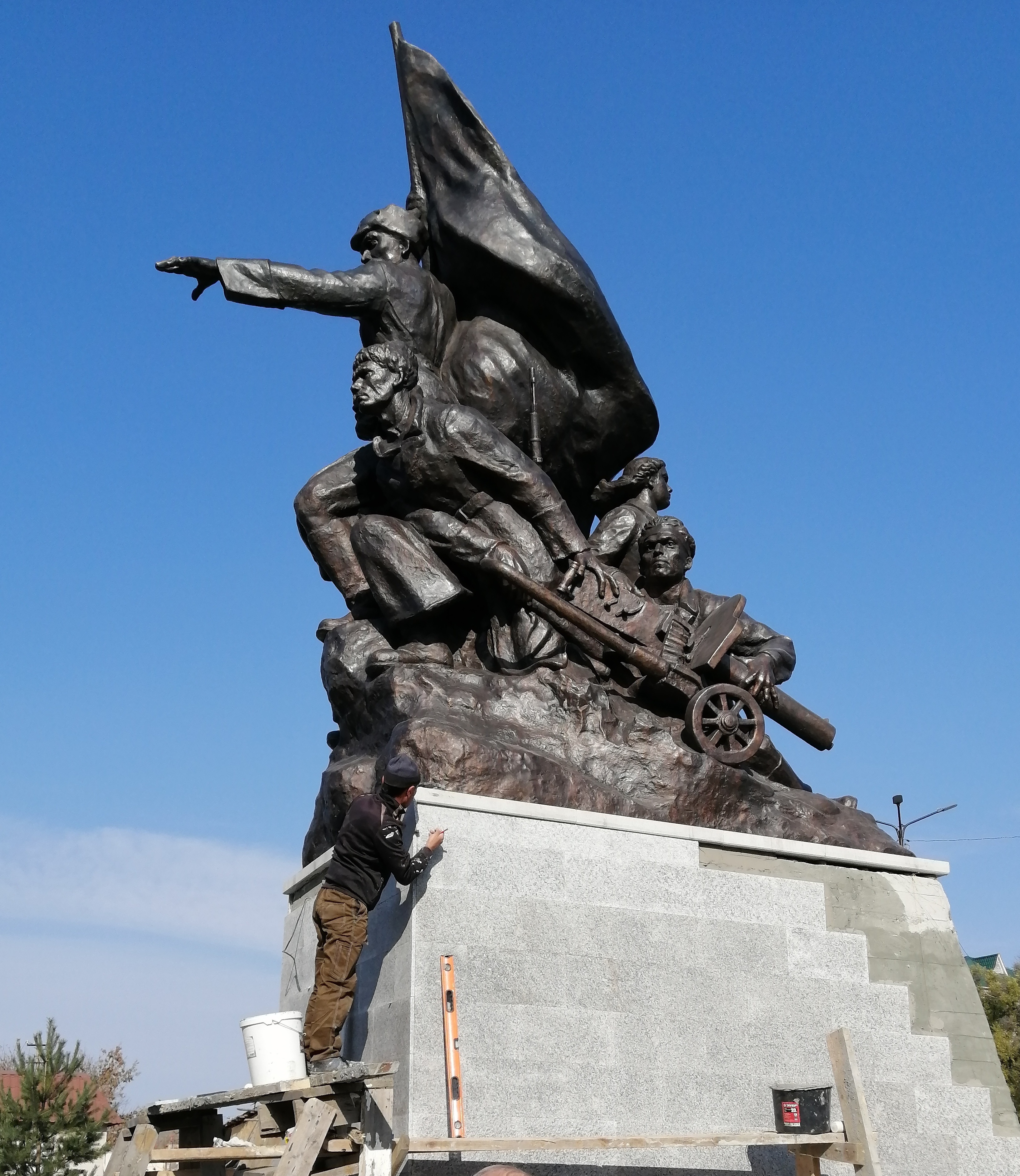 Сейчас строители облицовывают гранитом постамент и, в завершение, нанесут на нём знаменитые слова: «И останутся, как сказка, как манящие огни штурмовые ночи Спасска…». Работу обещают закончить к концу октября.