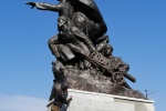 Затем, мы прибыли на привокзальную площадь, где строители уже установили новый бронзовый монумент «Штурмовые ночи Спасска» – композицию, где четыре бойца и санитарка под развёрнутым красным знаменем готовятся к атаке на врага.