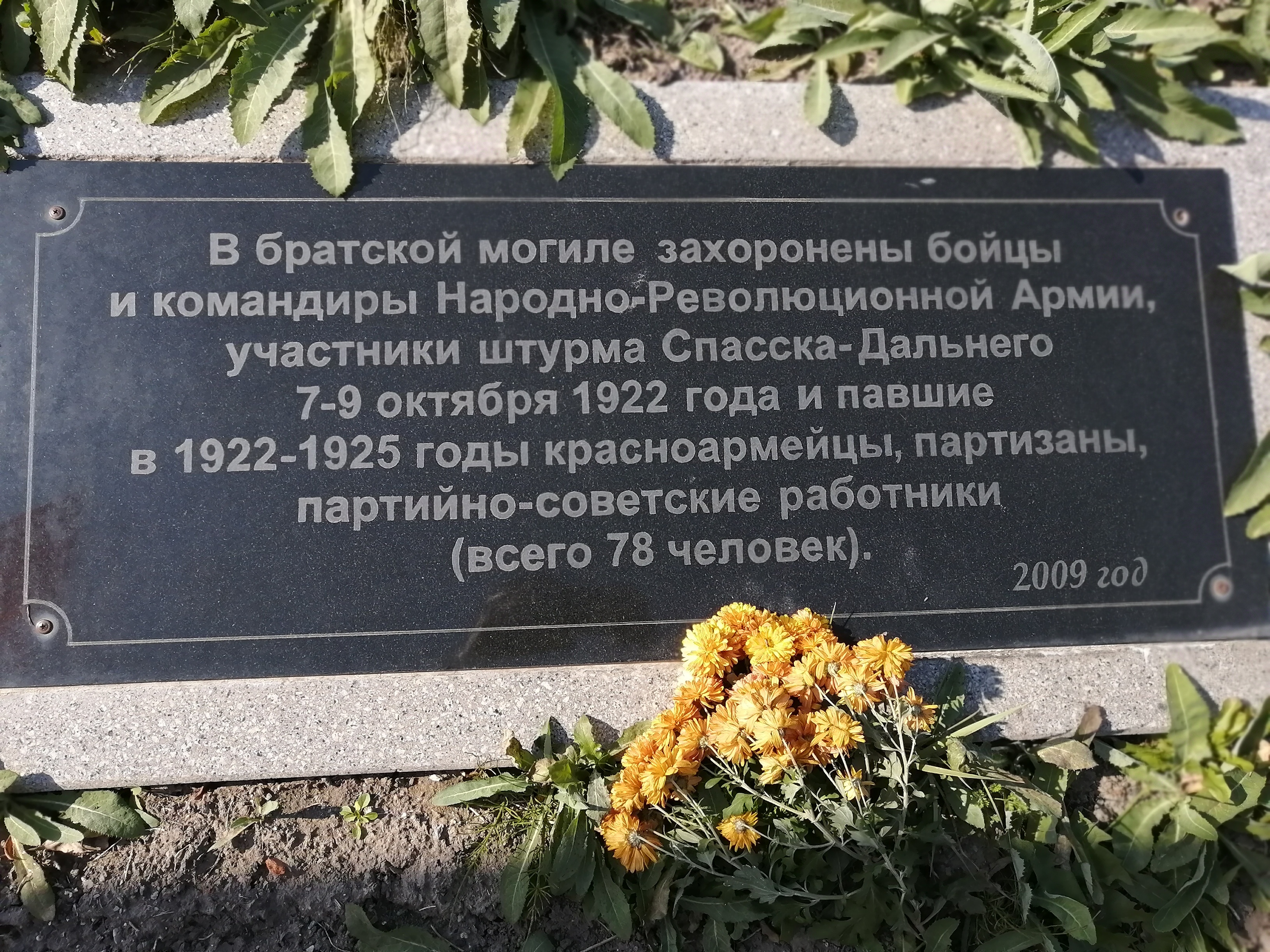 У памятника-обелиска и расположенной рядом братской могилы, где захоронены бойцы и командиры Народно-Революционной Армии, участники штурма Спасска-Дальнего 7 – 9 октября1922 года и павшие в 1922 – 1925 годах красноармейцы, партизаны, партийно-советские работники (всего 78 человек), состоялся торжественный митинг.