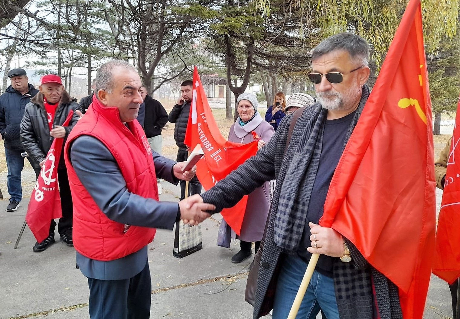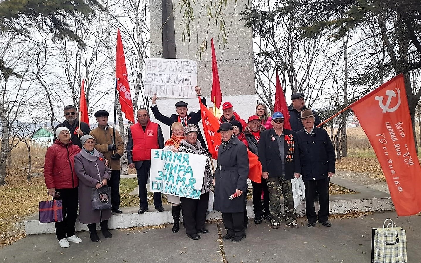 Лауреат краевых вокальных конкурсов, член партии Виктор Щербаков исполнил песни – «Есть у революции начало» и Варшавянку (Вихри враждебные веют над нами…). Участников было немного: партактив, несколько комсомольцев и сторонников. В этом были три причины: первая - середина рабочего дня(12-00), вторая - удаленность места проведения мероприятия от центра города, которая вызвана третьей, основной причиной – поступательное, из года в год ограничение граждан в их «праве собираться мирно, без оружия, проводить собрания, митинги и демонстрации, шествия и пикетирование» (ст. 31 Конституции РФ), с выдавливанием таких мероприятий на окраины городов. Этой «поступательности» служит наглядным примером Федеральный закон № 54-ФЗ «О собраниях, митингах, демонстрациях, шествиях и пикетированиях» от 19.06.2004 г.. Этот закон за последующие годы подвергся 13 редакциям, - «редактируем, редактируем, а они все равно никак не угомонятся». И это не считая актов региональных властей. Например, Губернатора Приморья, под чьё распоряжение от 8.09.22 г. подпадает и главный праздник КПРФ. Коммунистам отказали в проведении публичного мероприятия на центральной площади у памятника Ленину и где-либо еще – ковид. В то же время 4 ноября в ряде домов культуры города и ближайших поселков состоялись праздничные концерты. Сомневаемся, что в закрытом помещении в гуще зрителей поймать инфекцию «ковид» сложнее, чем на улице.