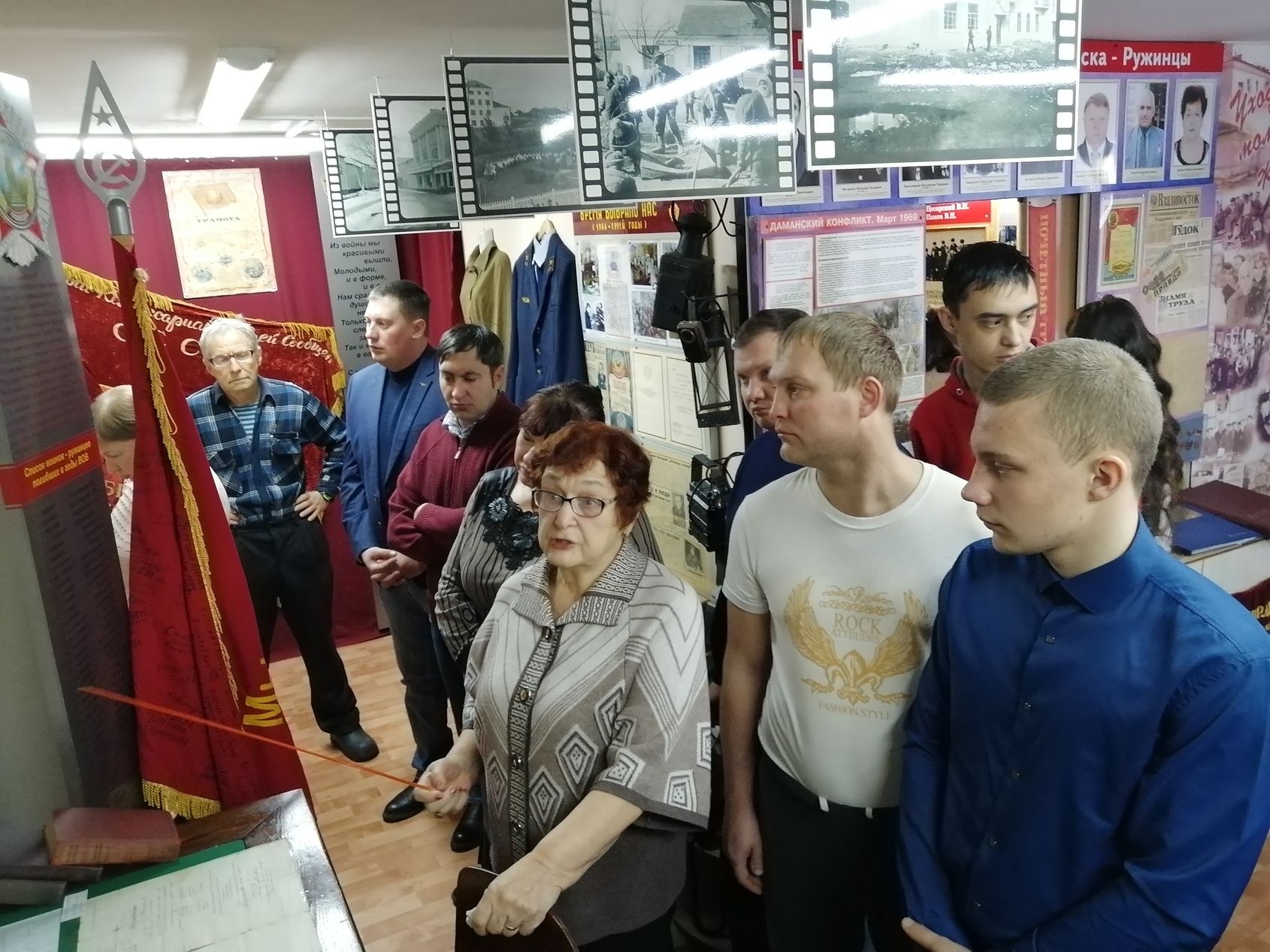 Перед началом семинара Любовь Алексеевна Душина, директор и основатель музея провела нам познавательную и интересную экскурсию. Я хочу немного рассказать вам об этом замечательном человеке. Любовь Алексеевна с 2018 года гордо носит звание «Почётного жителя Лесозаводского городского округа». Благодаря её усилиям за 5 лет был создан этот музей. Именно она поддерживала связь с предприятиями, договаривалась о помощи, добывала деньги и материалы. За свои заслуги перед жителями г. Лесозаводска и радушный приём Любови Алексеевне от имени ЦК КПРФ была вручена памятная медаль «В ознаменование 100-летия образования СССР».