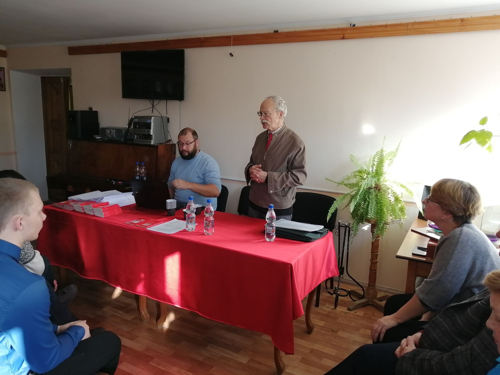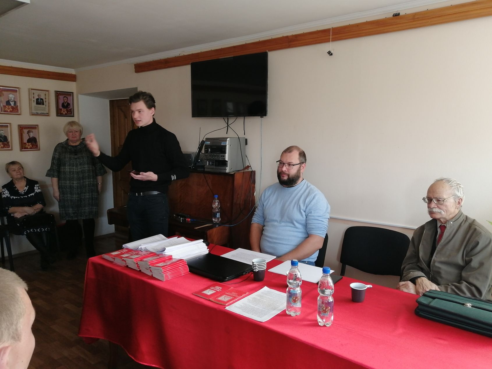 Ляшенко Евгений Иванович, второй секретарь ПКО КПРФ и комсорг ЦК ЛКСМ РФ по Дальневосточному федеральному округу, разъяснил организационное устройство КПРФ. Гурский Сергей Алексеевич, главный бухгалтер ПКО КПРФ, доложил о взносах.