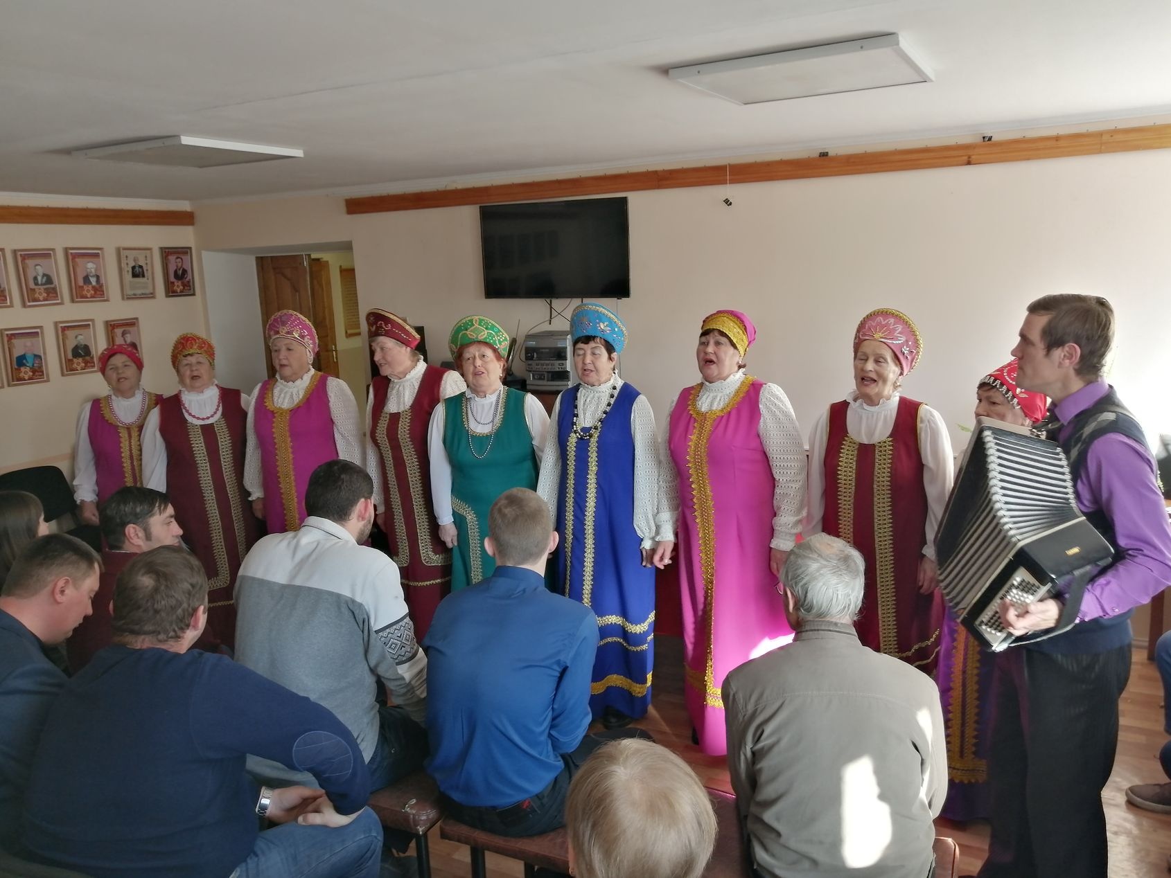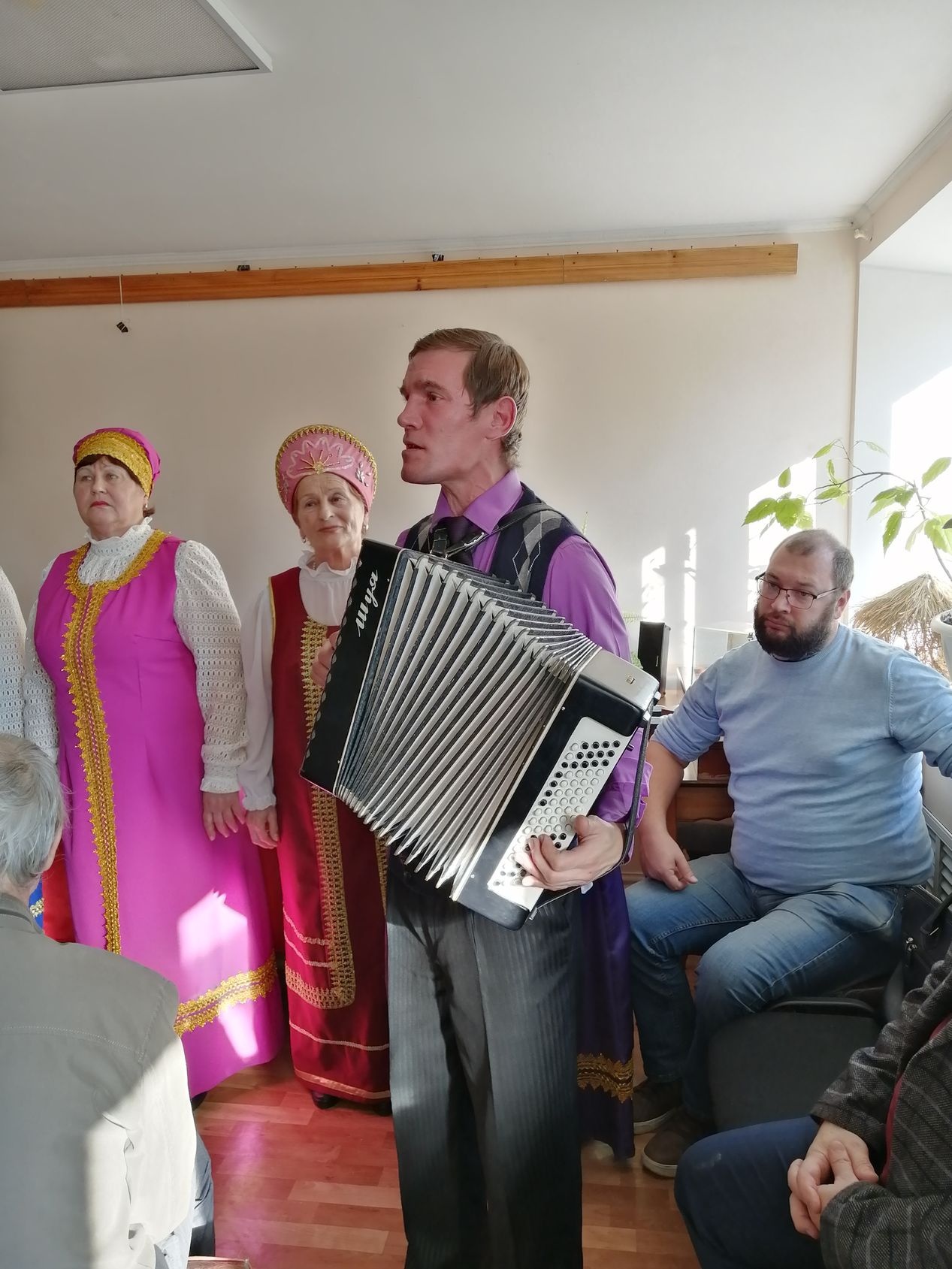 Для поднятия настроя и настроения перед нами любезно выступил хор «Ветераночка» под руководством Р.П.Дружининой. И не случайно! Именно в этом музее участники хора нашли свое творческое начало, здесь были спеты первые песни перед слушателями. Сейчас хору уже 20 лет, теперь он выступает в городском Доме Культуры.
