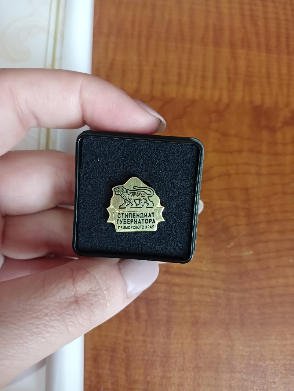 Именно за эти заслуги Олесе от имени Губернатора Приморского края Кожемяко Олега Николаевича были вручены букет цветов, значок и сертификат за особые успехи и активное участи в жизни региона, подтверждающий звание стипендиата 2022/2023 учебного года.