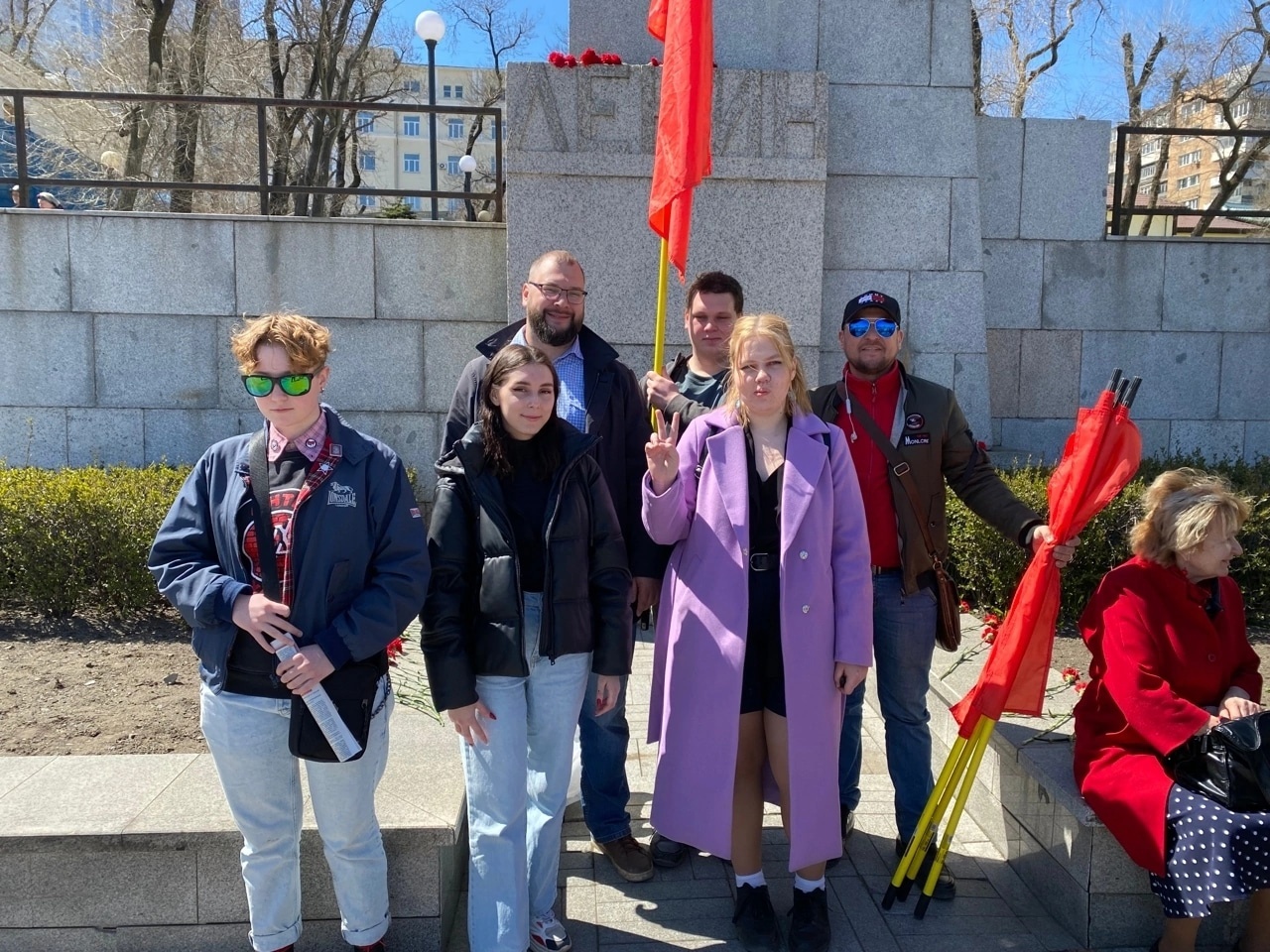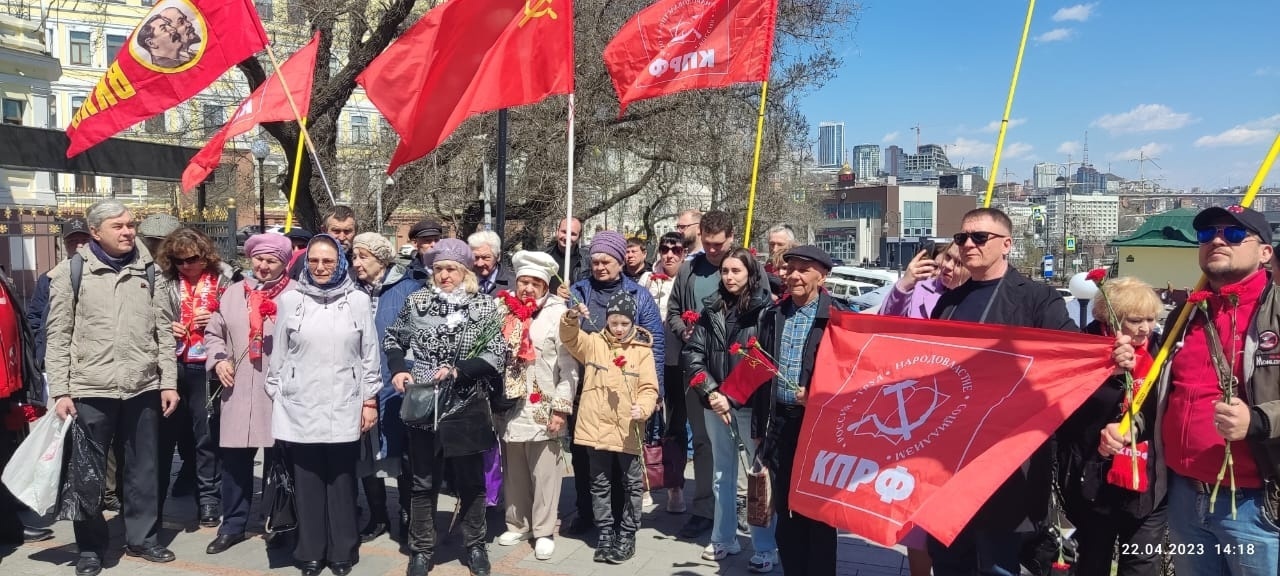 В 14:00 состоялось возложение цветов к памятнику на Вокзальной площади. Коммунисты и комсомольцы выступили с торжественными речами.