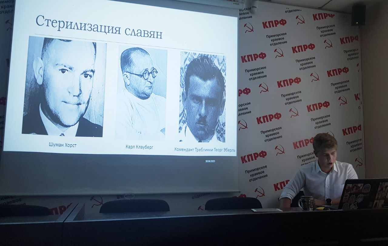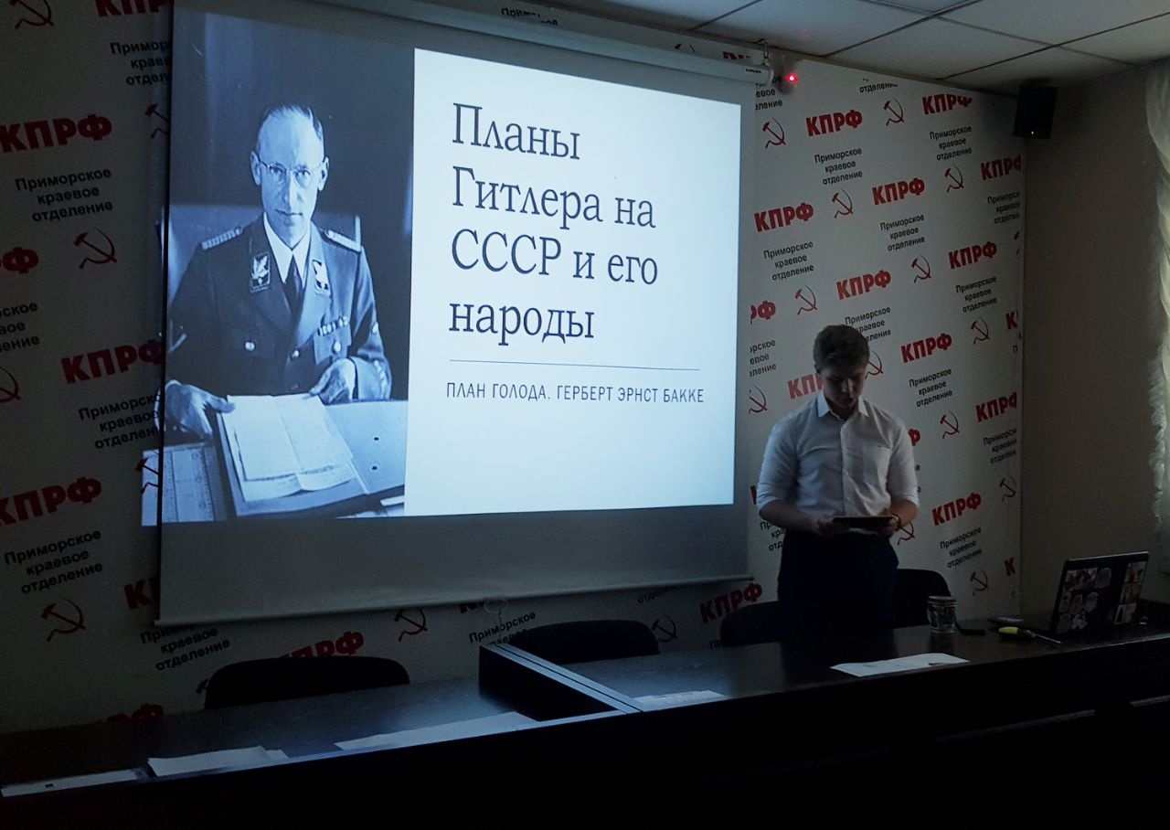 30 июня во Владивостокском городском отделении ЛКСМ РФ прошла лекция о планах Третьего Рейха на СССР и его народы. Мы поговорили о плане "Ост", "Барбаросса", о том, каким образом нацисты планировали уничтожать и эксплуатировать людей других национальностей, а также о роли индустриализации и коллективизации в победе Советского Союза над нацистской Германией. Мы считаем, что в текущих обстоятельствах эта тема очень важна. Ни в коем случае нельзя забывать о том, что происходило в то время, и чем это могло бы закончится для всего человечества, если бы нацисты одержали победу.