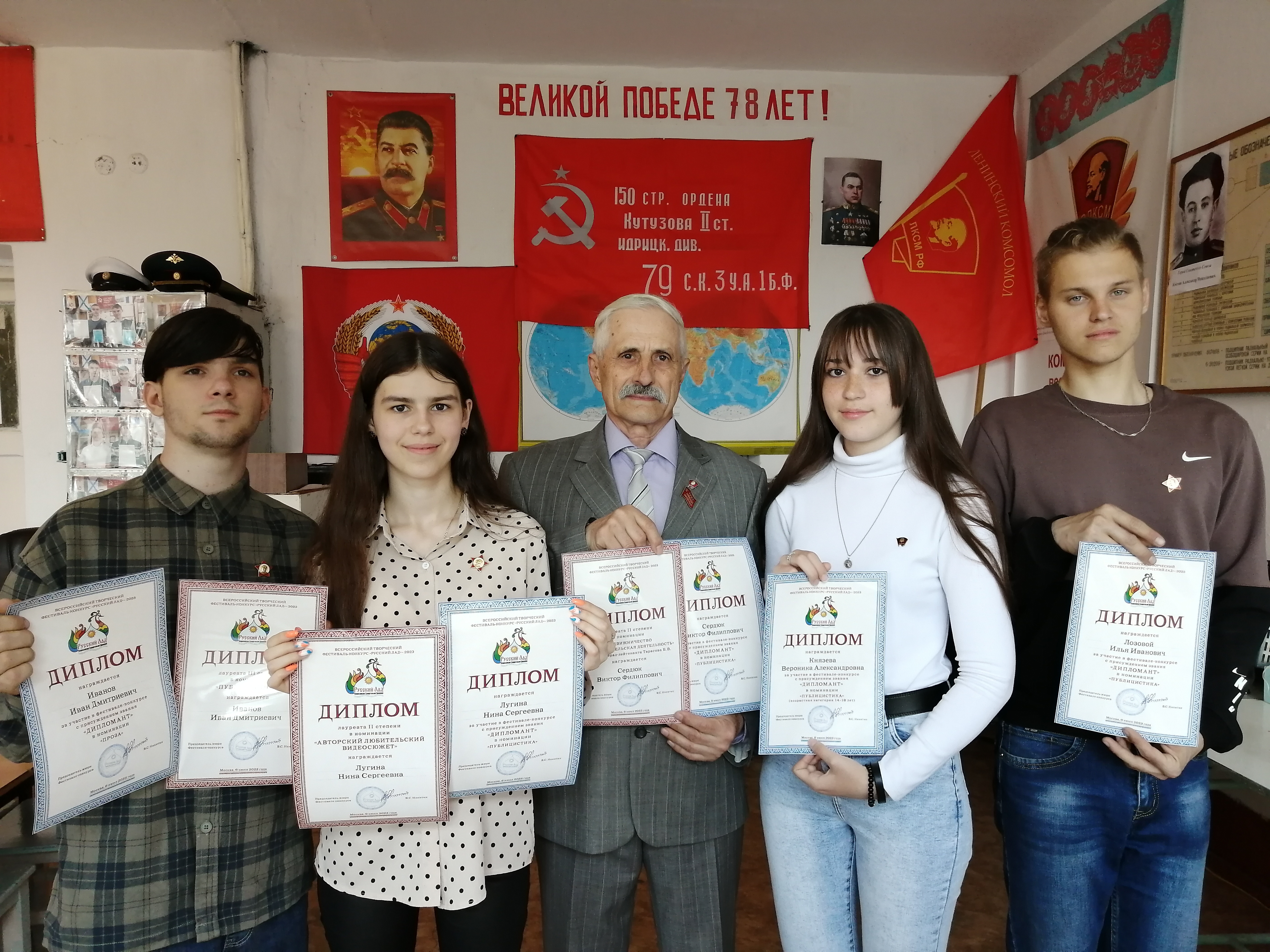 А это – уникальный случай! Впервые за всю историю фестивалей «Русского Лада» один и тот же участник – наш студент Иван Иванов – за одну и ту же работу заслужил звание лауреата III степени в номинации «Публицистика» и дипломанта в номинации «Проза». Его эссе «Отвага. Константин Рокоссовский» расмещено на сайте Всероссийского созидательного движения «Русский Лад».