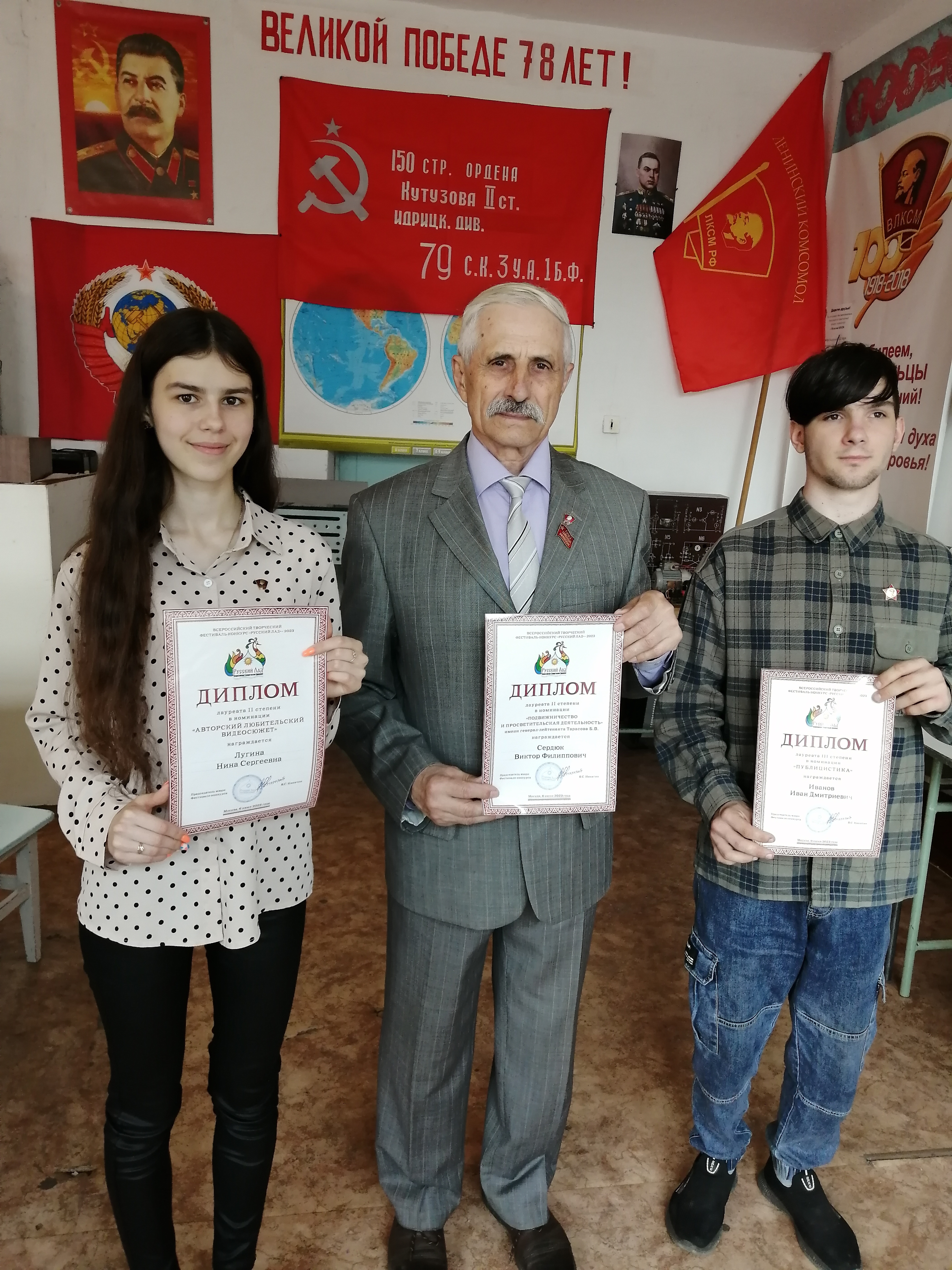 Дипломантами в номинации «Публицистика» стали и Илья Лозовой за статью «Эхо события», и Вероника Князева за статью «Ленинскому комсомолу 104 года». Все эти материалы были опубликованы в газете ЛГО «Любимый город на берегах Уссури». Кстати, Нина Лугина и Илья Лозовой были дипломантами фестиваля и в прошлом году!