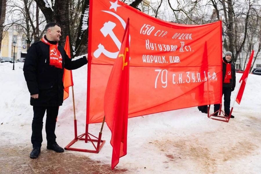 Активисты КПРФ и представители лево-патриотических сил возложили цветы к памятнику В.И. Ленину.