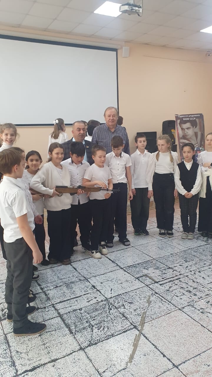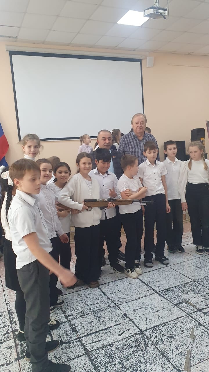 Школа, школьное самоуправление подготовило команду талантливых ребят для организации и проведения мероприятия. Ведущие (Сахненко А., 10" А" и Ермак И., 4" А" кл.) сделали краткое сообщение об истории праздника, о боевом пути Красной Армии и флота, Советских, а ныне - Российских вооруженных сил.