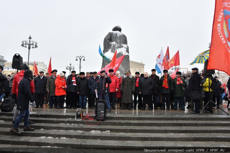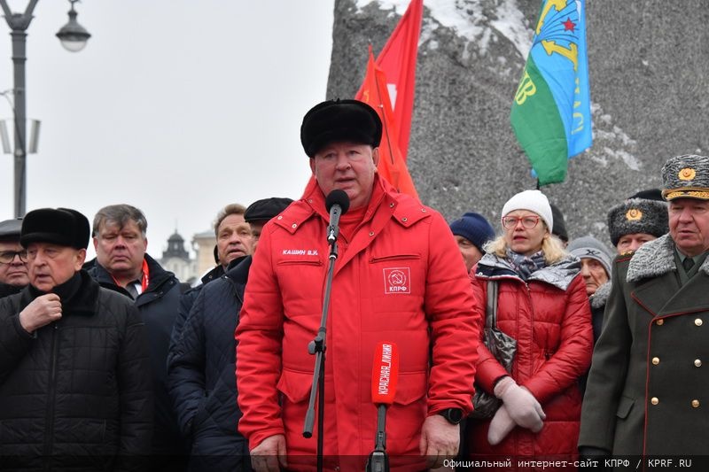 Открыл и вел митинг заместитель Председателя ЦК КПРФ, Руководитель Общероссийского штаба протестных действий В.И. Кашин. Он поздравил собравшихся со 106-й годовщиной победоносной Красной Армии и Военно-Морского флота. «Наша армия, рожденная в горниле Гражданской войны, сумела пройти уникальный путь, - подчеркнул Владимир Иванович. – Она не только победила Антанту, но и уничтожила гидру фашизма во время Второй Мировой войны. Она защищала мир на планете, помогала на всех континентах нести правду, добро и справедливость».