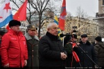 Столь же эмоционально, как им предыдущий оратор, выступил первый секретарь ЦК ЛКСМ, депутат Госдумы В.П. Исаков. Он напомнил, что Красная Армия была рождена Великим Октябрем. Социализм показал свое историческое преимущество над варварским капитализмом. Советский солдат всегда нес народам мир и согласие. Победными нас сделало, считает выступающий, Красное Знамя Ленина и Октября.