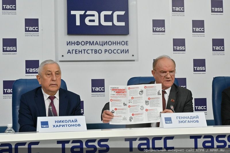 18 марта в ИА ТАСС состоялась пресс-конференция, посвященная итогам прошедших выборов Президента РФ. В ней приняли участие Председатель ЦК КПРФ Г.А. Зюганов, кандидат в Президенты РФ от КПРФ, член Президиума ЦК КПРФ Н.М. Харитонов, первый заместитель Председателя ЦК КПРФ Ю.В. Афонин, заместитель Председателя ЦК КПРФ Д.Г. Новиков, секретарь ЦК КПРФ А.А. Ющенко, секретарь ЦК КПРФ Г.П. Камнев.