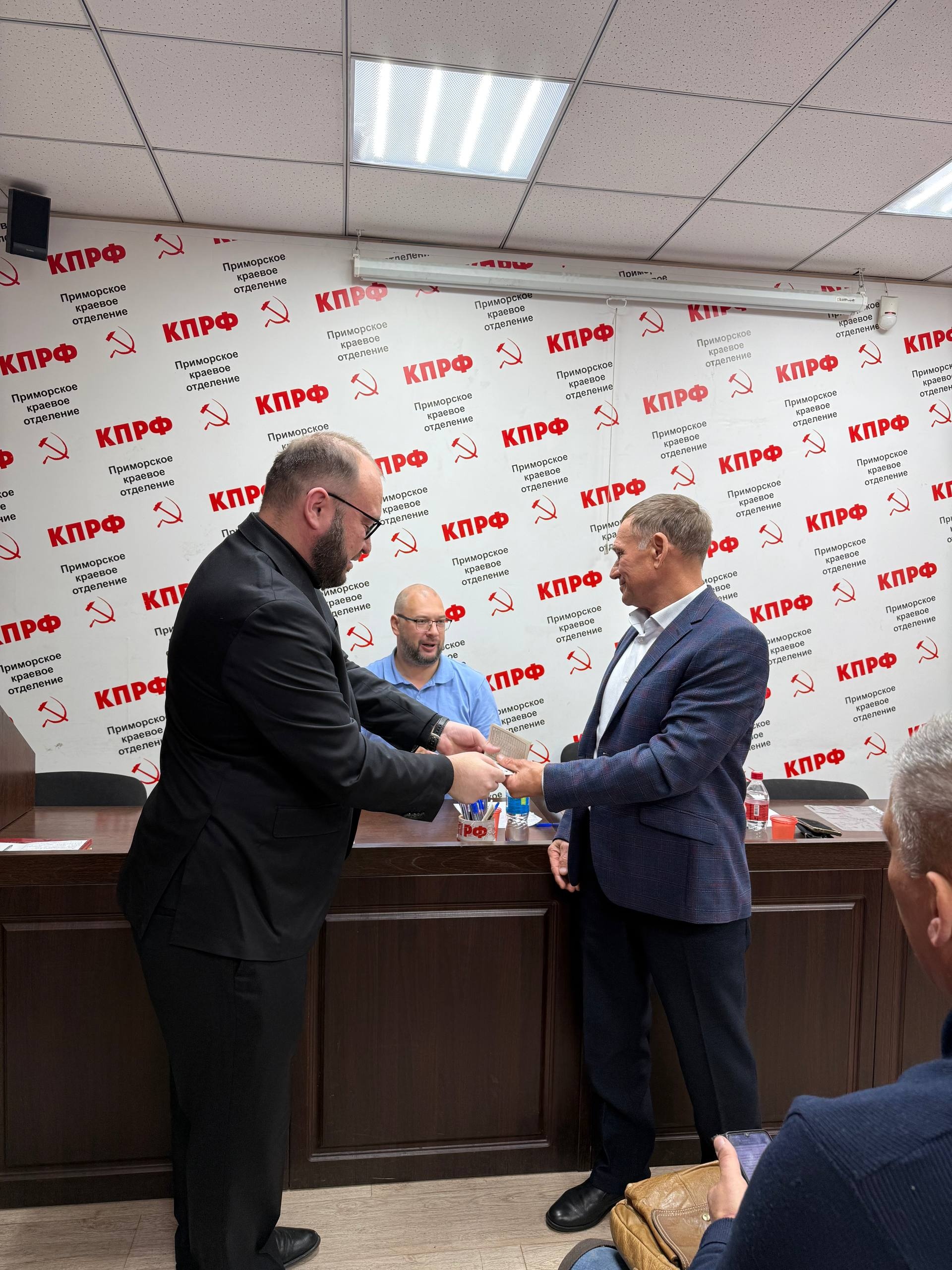 13.12.2025 года Приморские коммунисты провели VII Пленум Комитета краевого отделения партии, в котором приняли участие члены краевого комитета - секретари местных отделений, кандидаты в члены комитета, а также приглашенные товарищи со всего Приморского края. Перед началом работы в торжественной обстановке первый секретарь Приморского краевого комитета партии Анатолий Николаевич Долгачев вручил медаль ЦК КПРФ "80 лет Победы в Великой Отечественной войне" и ценный подарок участнику специальной военной операции, члену Владивостокского местного отделения, а/о "Наука" - Сергею Юшкову, затем секретарям местных отделений были вручены новогодние подарки и сказаны самые теплые пожелания с наступающим Новым годом.