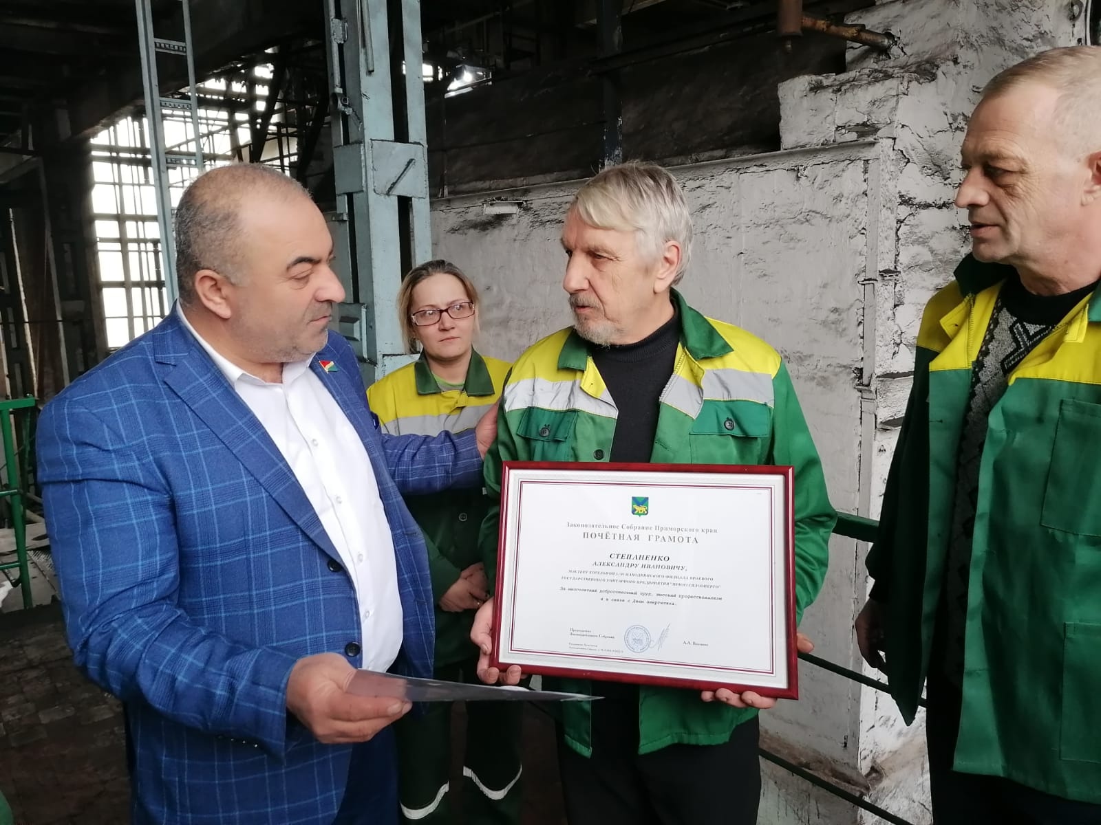 5 октября 2025 года первый секретарь Находкинского городского комитета КПРФ, депутат Законодательного Собрания Приморского края Эльсевар Октаевич Габибов посетил котельную № 5/01 Находкинского филиала КГУП "Примтеплоэнерго" в пос. Врангель Находкинского городского округа. В ходе визита за многолетний добросовестный труд и высокий профессионализм была вручена Почетная грамота Законодательного Собрания Приморского края мастеру котельной Александру Ивановичу Степаненко. Также Э.О. Габибов выразил глубокую благодарность всем сотрудникам котельной за их нелегкий, но очень важный для жителей пос. Врангель, труд.