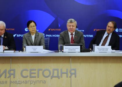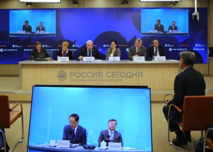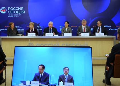 Встречу в Международном мультимедийном пресс-центре медиагруппы "Россия сегодня" дополнил видеомост с Пекином. Его тема звучала так: "Якорь стабильности и крылья развития: новая архитектоника глобального управления глазами экспертов из Китая и России".