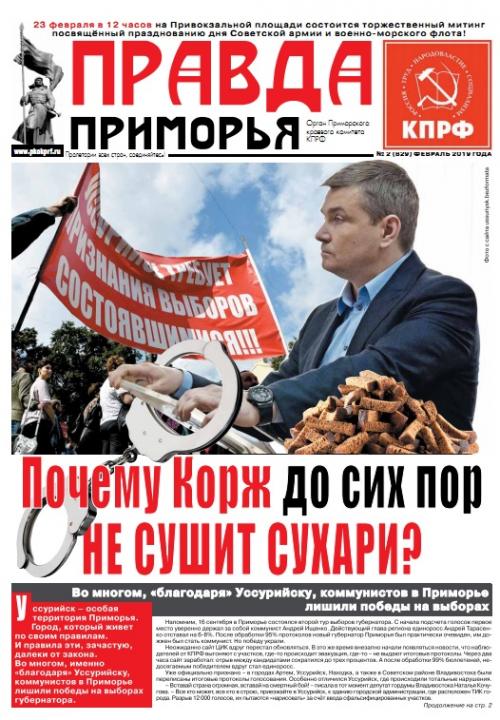 Эти и другие материалы Вы можете прочитать в февральском номере краевой газеты "Правда Приморья!". Спрашивайте номер в городских и районных отделениях КПРФ!