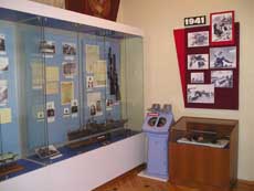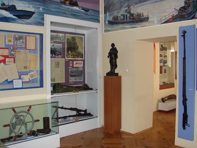 В послевоенные годы Тихоокеанский флот, как и все Вооруженные Силы страны, претерпел коренную военно-техническую революцию. Он постоянно оснащался всеми видами современной боевой техники и оружия. В экспозиции представлены образцы стрелкового оружия (показ), модель эсминца "Неудержимый", первого ракетного корабля ТОФ, завоевавшего в 1963 г . приз Главкома ВМФ за ракетные стрельбы.
