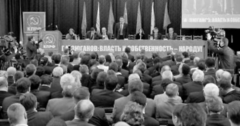 Встречу продолжило выступление председателя ЦК КПРФ, кандидата в президенты от Коммунистической партии Г.А. Зюганова, который обратился к депутатам со своим посланием