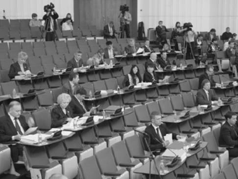 Рядом сидят и дружески общаются наблюдатели от ЕР, Жириновского и Прохорова.